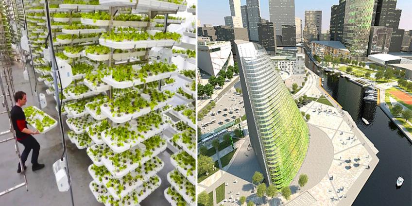 В Линчепинге (Швеция) завершается постройка первой в мире городской фермы-небоскреба, детища шведско-американской фирмы Plantagon International. Здание представляет собой многоэтажную стеклянную теплицу шаровидной формы с размещенными внутри грядками. Ящики с рассадой поднимаются с помощью лифта на верхний этаж, а затем в течение нескольких недель медленно спускаются по спиралевидному эскалатору вниз. На первый этаж прибывают уже спелые овощи, которые можно собирать и отправлять в магазины или на рынки.