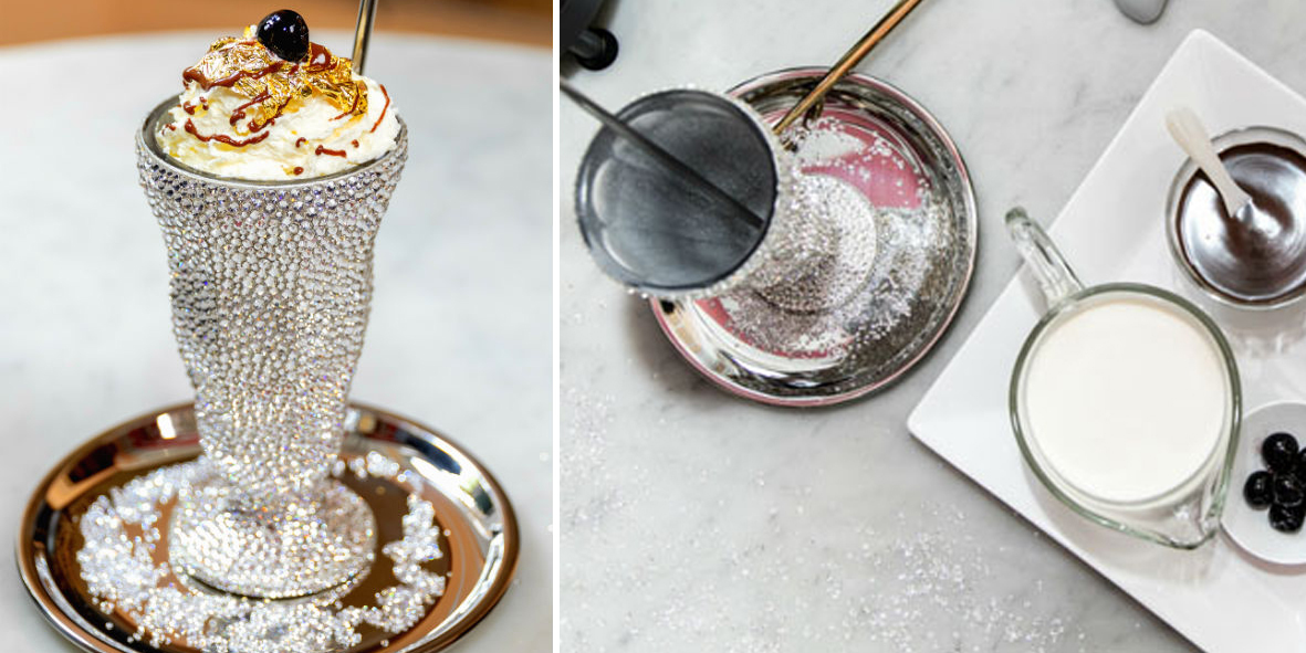 Ресторан «Serendipity» (Нью-Йорк, США) предлагает своим посетителям роскошную сладкую новинку, которая попала в Книгу рекордов Гиннеса. Этот молочный коктейль обойдётся любителям сладкого в 100 долларов. Шеф-повар Джо Кальдероне тщательно продумывал рецепт этого коктейля, подбирая для него изысканные ингредиенты. Прежде всего, это молоко джерсийских коров, которое славится своей жирностью. Плюс таитянское ванильное мороженое, в которое добавляется вяленая на солнце ваниль и мадагаскарские ванильные бобы, отличающиеся особенно богатым вкусом. Для украшения используется крем, сделанный из венесуэльского какао, пьемонтского фундука, тростникового сахара и свежего ослиного молока. Не стоит также забывать о 23 каратах съедобного золота и о стаканчике, в котором подаётся лакомство – это настоящее произведение искусства, украшенное кристаллами Swarovski. Впрочем, как отмечает сам повар, уникальный рецепт он разрабатывал не ради рекорда, а только для того, чтобы самые требовательные гурманы наслаждались каждой каплей этого потрясающего коктейля.